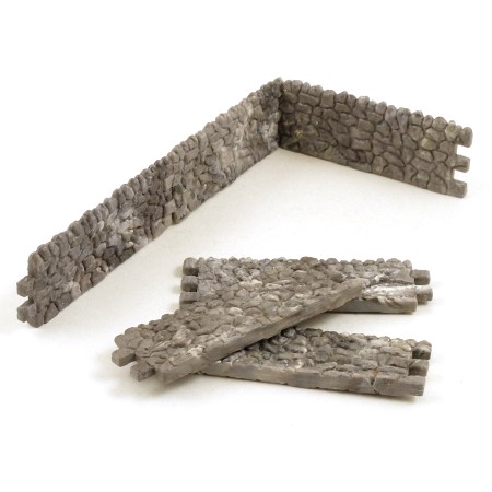 6 interlocking stone wall pieces. The colour of Britains stone walling varies: these ones are mottled in a variety of shades, but are predominantly mid grey.