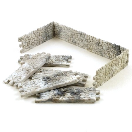 9 interlocking stone wall pieces. The colour of Britains stone walling varies: these ones are mainly light grey with shading in various darker and lighter tones.