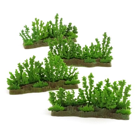 Four hedges, each consisting of 1 base, 6 pieces of foliage and 6 tufts of grass. Some push-together assembly required.