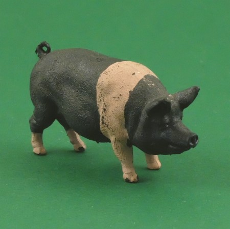 Black, with pink 'saddle' and trotters. 'BRITAINS LTD ENGLAND' on the underbelly, indicating manufacture in or after 1964.