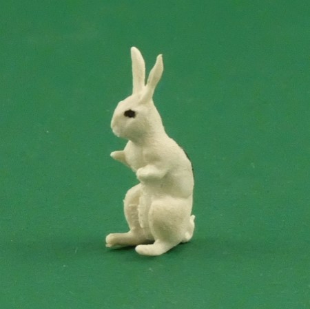 Standing 20mm tall, this buck rabbit is white with black back marking, pink ears and dark brown eyes. It is a post 1962 release with 'ENGLAND' marking and is in very good condition with only slight paint loss.