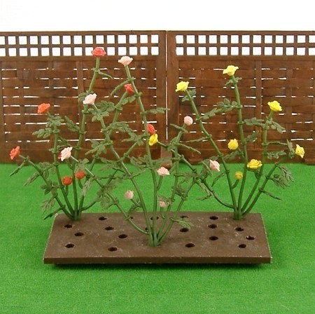 One of the most attractive plants in the Floral Garden range, these three climbing roses look particularly realistic with their separate leaves and stems. With red, pink and yellow flower heads, each plant has 24 leaves and 8 blooms. Complete with rectangular flower bed.