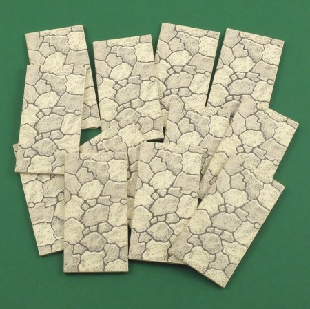 12 crazy paving sections in card, generally in excellent condition. Britains crazy paving tends to vary in colour tone: these pieces have a bold printed pattern.