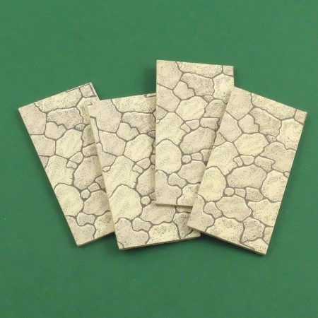 4 crazy paving sections in card, in excellent condition. Britains crazy paving tends to vary in colour tone: these pieces have a bold printed pattern.
