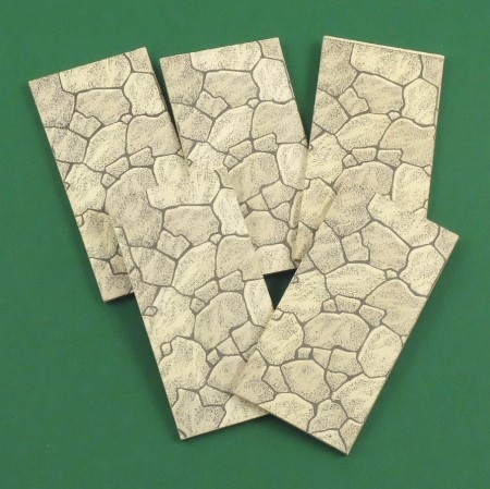 5 crazy paving sections in card, in very good condition. One piece has a 1mm blank bit at one end, otherwise excellent. Britains crazy paving tends to vary in colour tone: these pieces have a bold printed pattern.