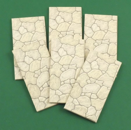 6 crazy paving sections in card, in excellent condition. Britains crazy paving tends to vary in colour tone: these pieces have a medium printed pattern.
