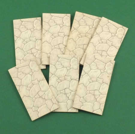 7 crazy paving sections in card, in good condition. There is very slight edge discolouration, and one piece has a small surface mark. Britains crazy paving tends to vary in colour tone: these pieces have a medium-to-light printed pattern.