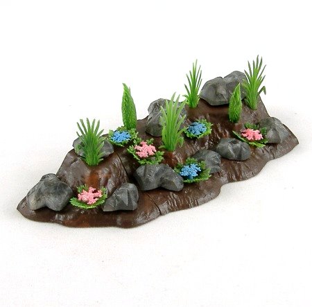 Supplied with 10 rocks, 5 reeds, 2 conifers and 6 pink and blue rock plants. Note that the 10 rocks are supplied to give you a selection - there may not be sufficient space on the rockery for them all at once!