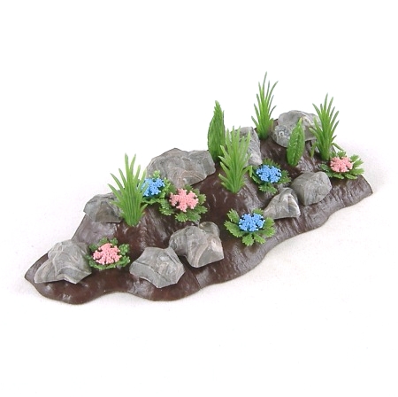 Supplied with 10 rocks, 5 reeds, 2 conifers and 6 pink and blue rock plants. Note that the 10 rocks are supplied to give you a selection - there may not be sufficient space on the rockery for them all at once!