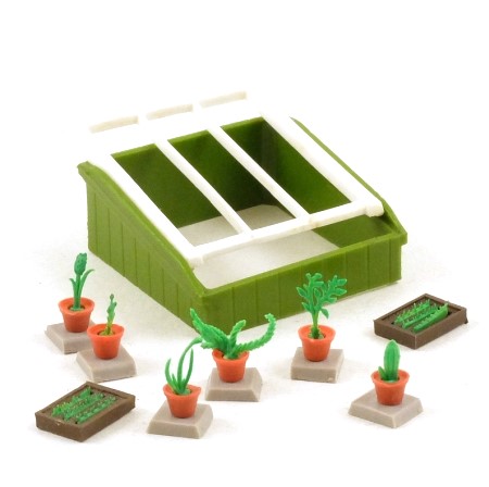 Cold frame with sliding/removable lid. Supplied complete with 2 seed trays with seedlings and 6 assorted plants in pots.
