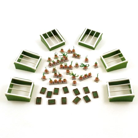 Cold frame with sliding/removable lid. Supplied complete with 12 seed trays with seedlings and 36 assorted plants in pots.