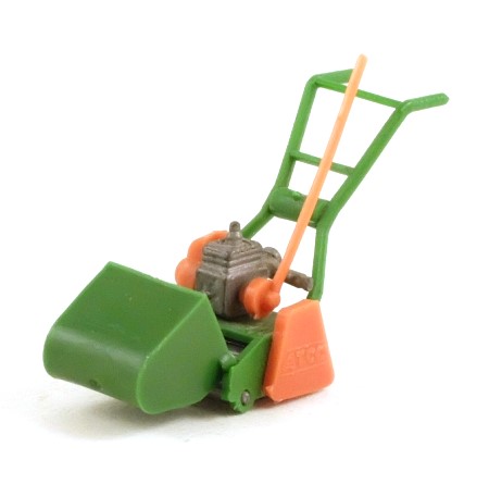 This is a charming little model of an Atco petrol-engined mower. With detailed metal rollers and cutting cylinder and removable grassbox, and complete with operating lever.