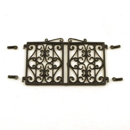 This is a 'wrought iron' fence section with 4 hinges, for use with Britains stone pillars with hinge holes. Ideal for joining two sets of fences and pillars.