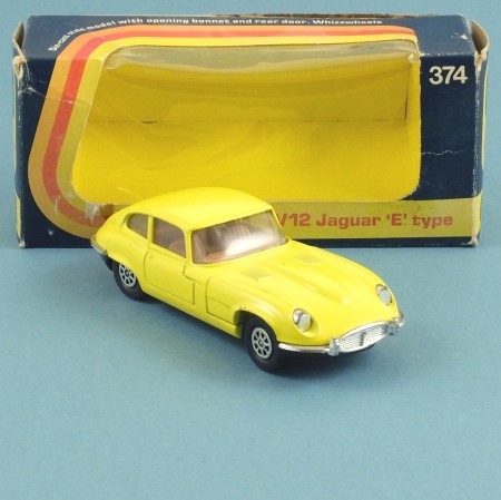 Yellow, with chrome bumpers, grille and headlights. The bonnet opens to reveal a chrome and black engine. Opening rear hatch, light brown interior with gold steering wheel. Black base with cast-in exhaust detail. Whizzwheels with silver 'Rostyle' centres and suspension.