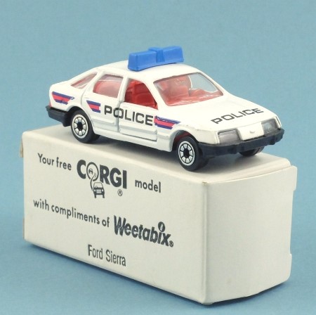 This model is very near mint (very slight box rubbing on one side). This example was supplied as part of a Weetabix promotion, and comes in a plain white box with black lettering. The box has a crease on one side.