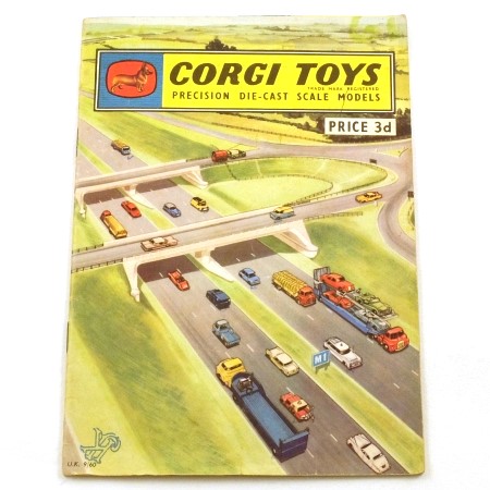 20 pages, issued autumn 1960. Cover depicts an M1 motorway junction scene. This catalogue includes the first Chipperfields Circus models. With a Corgi Model Club application form on the back. Cover price 3d.