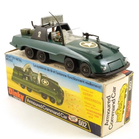 This vehicle was designed by Gerry Anderson of Thunderbirds fame, for a proposed TV series called 'The Investigator'. A pilot episode was filmed in 1973, but the project did not proceed any further, so Dinky released the model as a general military vehicle in dark green instead of the red 'civilian' version of the film.