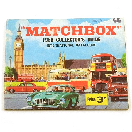 32 pages, with price list on page 31. The cover depicts a London road scene including No.75 Ferrari Berlinetta, No.66 Mercedes Coach, No.57 Land Rover Fire truck, No.5 Routemaster Bus, and a rather out-of-place No.59 US Fire Chief Car. 3d cover price.