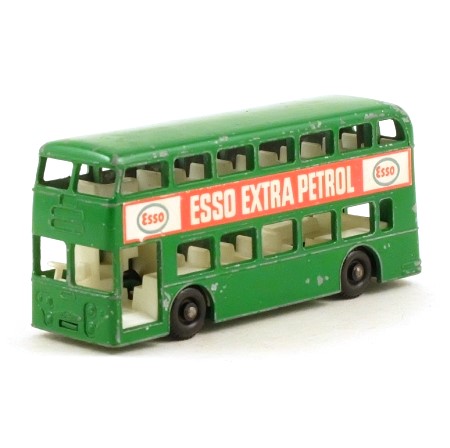 Green, with white interior. 'Esso Extra Petrol' labels on the sides in red, white and blue. The wheels are black plastic with suspension.